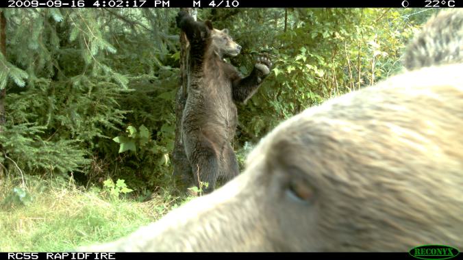 Previous Published April 22, 2014 at 1920 × 1080 in Why study scent marking in grizzly bears? Cub back rubbing a scent marking tree with its mother in the foreground © Melanie Clapham